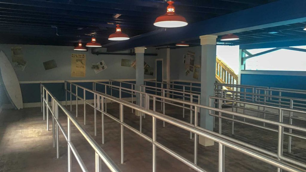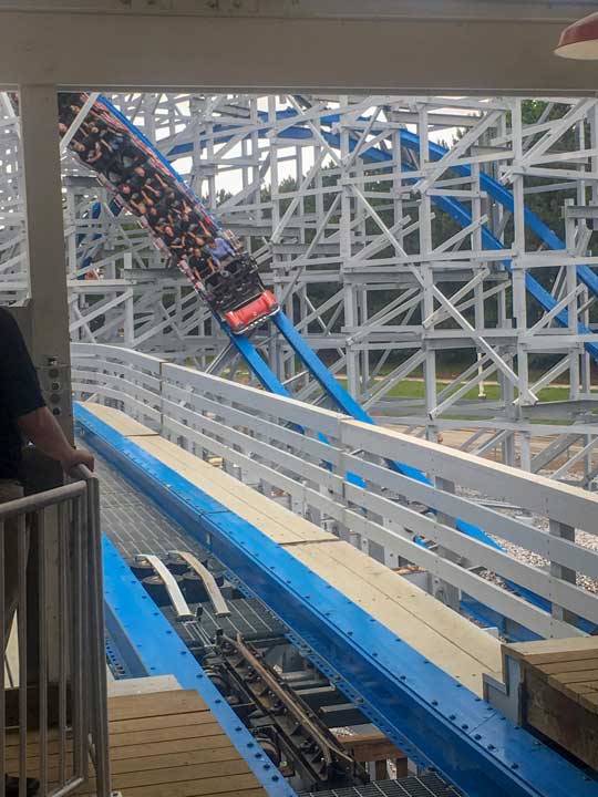 The station is the same layout as the Georgia Cyclone was. It was given new floorboards and guardrails. The ride exit paths also have new ramps that provide a great view of the interior of the ride. You get a sense of speed and thrill watching the trains go by. You can even feel the station shake a bit when the train flies past after the wave turn element.