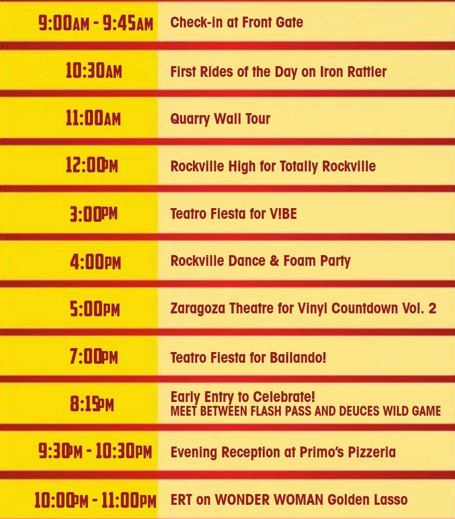 Once the celebration was completed, we made our way to Primo’s Pizzeria for an evening reception including food, drinks, treats, and adult beverages. It was a great way to cool off a bit before our journey to the star attraction for our evening ERT. Wonder Woman: Golden Lasso Coaster did not disappoint. It is non-stop action from the moment you get on the ride using the unique continuous loading/unloading system to the final brake run.
