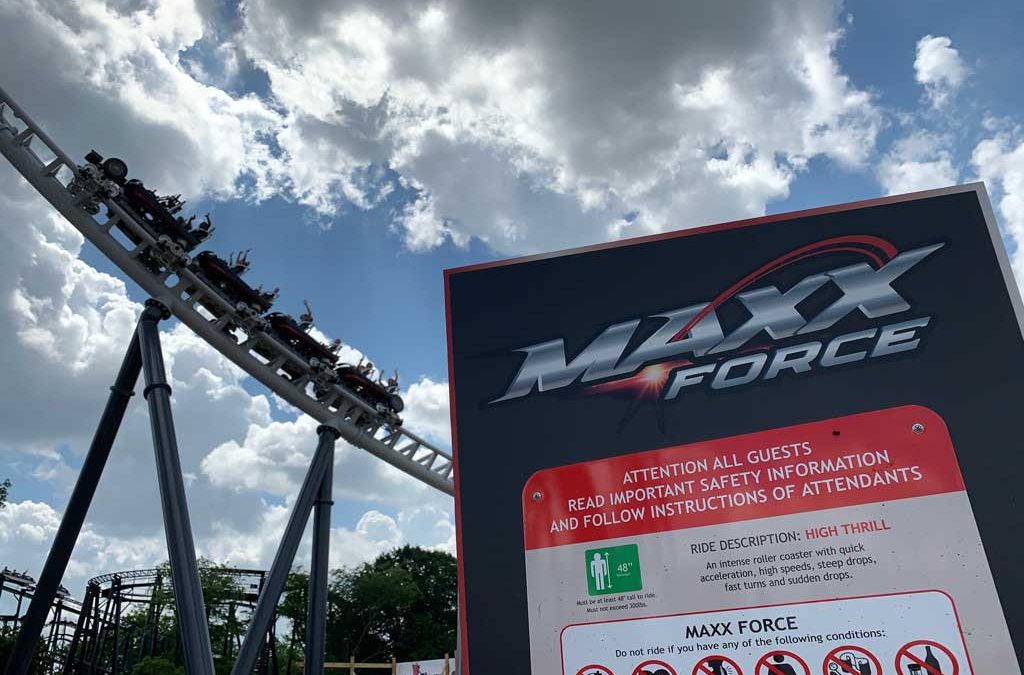 Our travels took us today to the Chicagoland area, as we were invited by Six Flags Great America to attend the media day for their new 2019 roller coaster, Maxx Force. This ride is the new 2019 addition for the park. It sits in the former spot of the Pictorium...